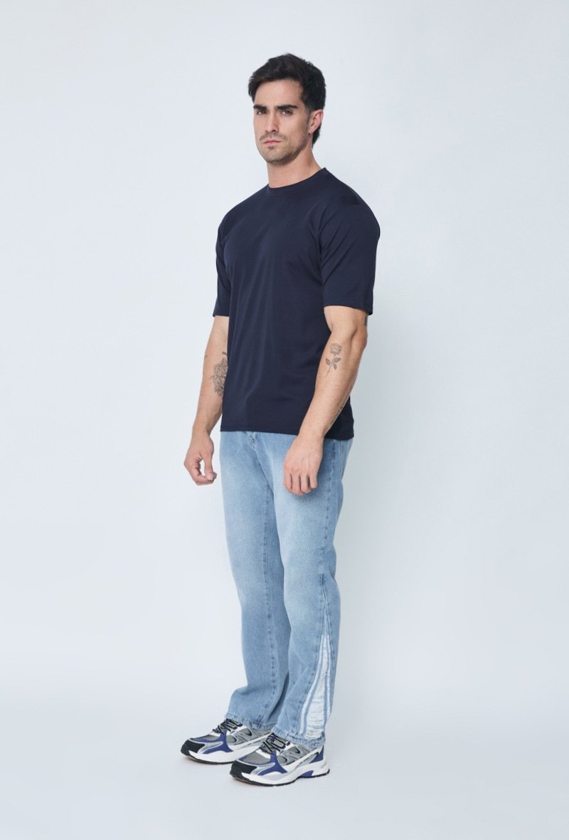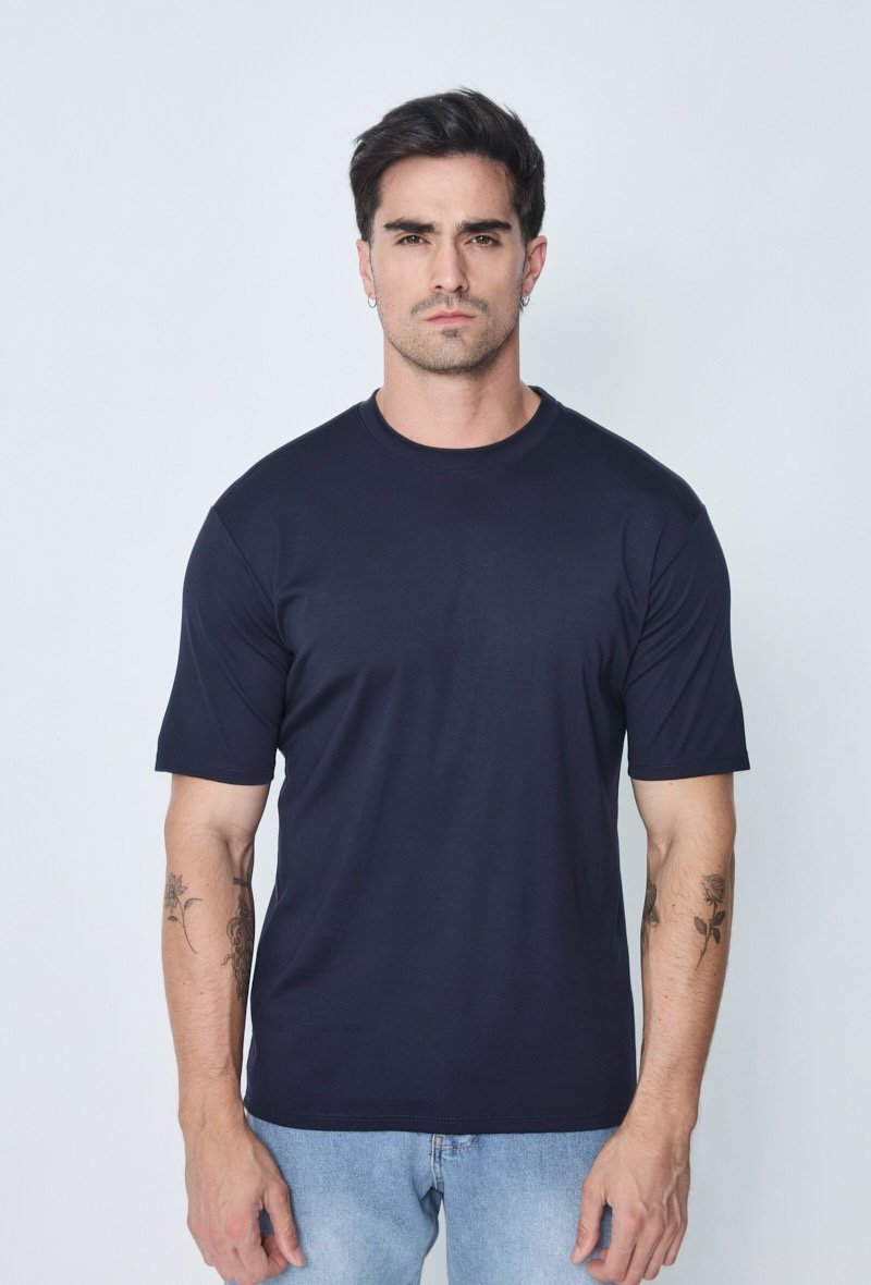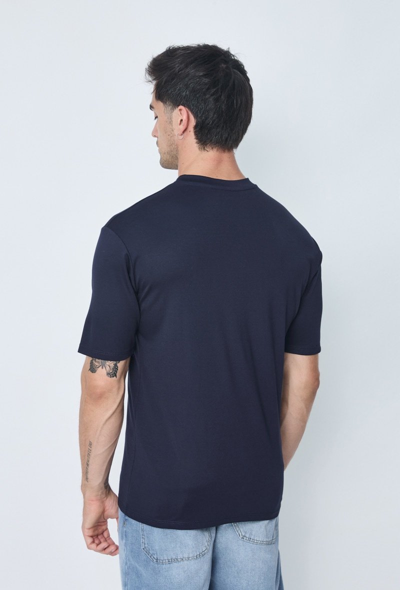 Een stijlvol T-shirt in een diepe navy kleur, gemaakt van hoogwaardige stof met een subtiele glans. De regular fit en het zachte materiaal zorgen voor optimaal comfort, terwijl de rijke donkerblauwe tint een moderne en veelzijdige uitstraling geeft. Perfect te combineren met zowel jeans als pantalons voor een strakke casual of nette look.