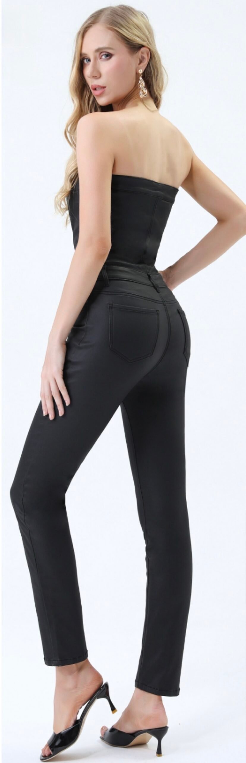 Maak een statement met deze elegante strapless zwarte jumpsuit!